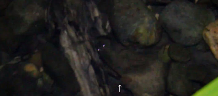 テナガエビは夜になると隠れ家から出てきて歩き回るし