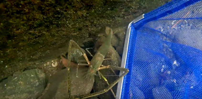 夜は水中をライトで照らすとテナガエビの目が光を反射して光るから凄くわかりやすい!