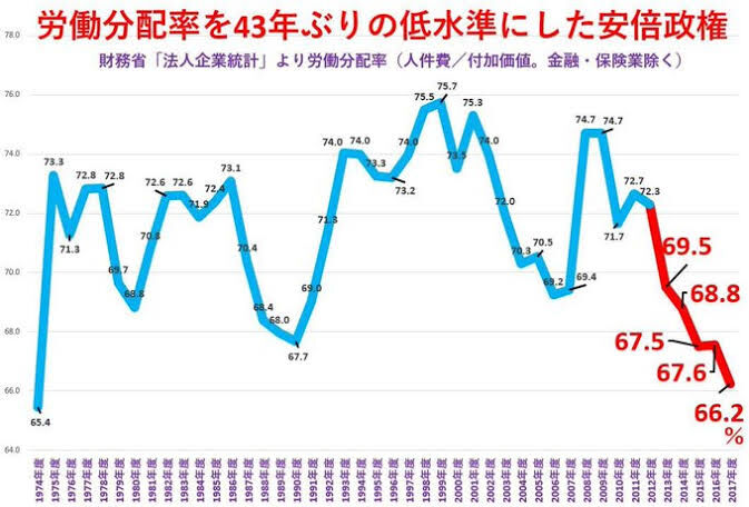 ・格差は広がり労働分配率は過去最低