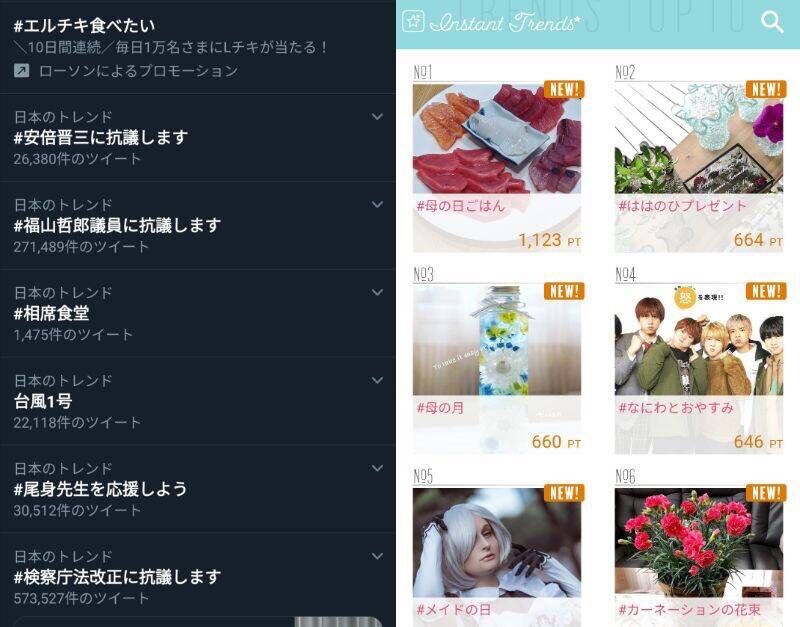 - Twitterとインスタのトレンド比較