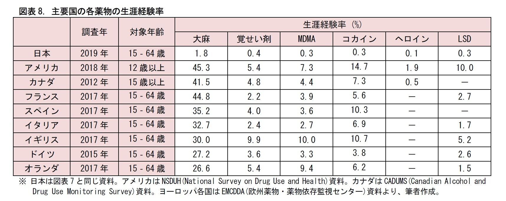 - 結局日本より大麻使用率が高い他所の国は