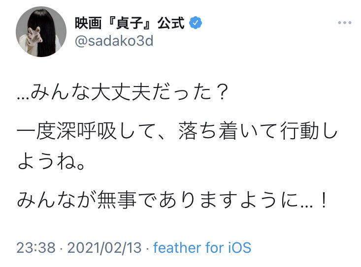 地震でも己の身の安全を鑑みずにTwitterする日本人すげええええええええええ - 81: 以下、Zチャンネル@VIPがお送りします 2021/02/14(日) 00:39:50.93 ID:FZNL2LF90
