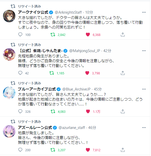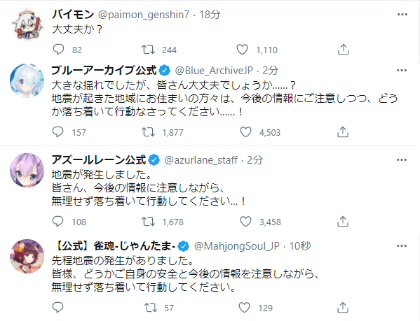 - ゲーム会社が地震ツイートするのか
