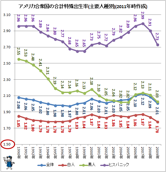 アメリカは黒人ですら出生率は下がってきていて、アメリカの出生率を支えてるのはヒスパニックの人達