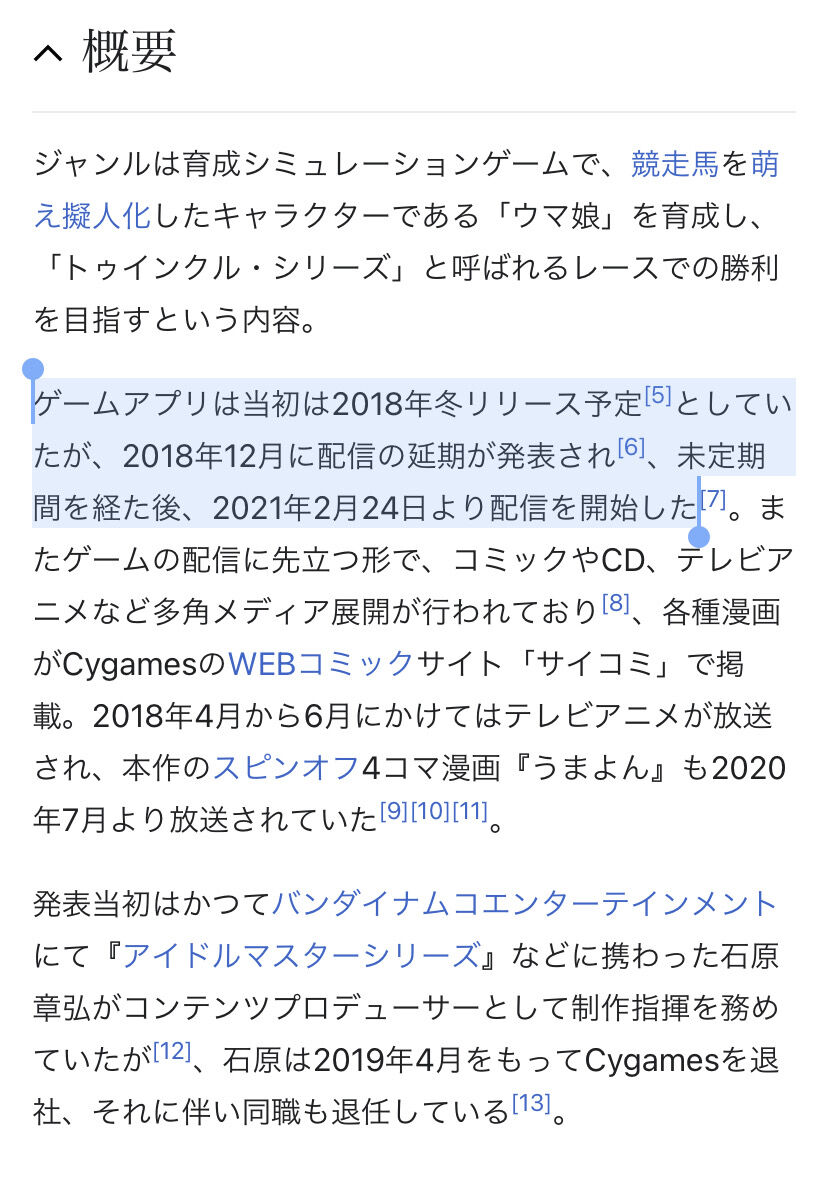 - ウマ娘プロジェクト開始が2016年
