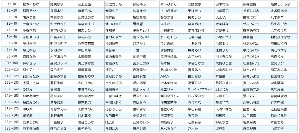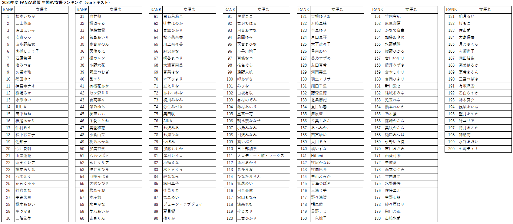 Twitter限定公開 2020年度AV女優年間ランキングTOP200