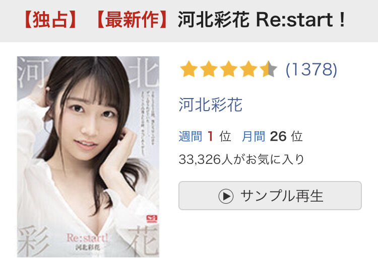 - 河北彩花の復帰作のレビュー数がこちら😤