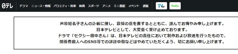 引用元: ・【速報】日テレ「関係者個人へのSNS等での誹謗中傷などはやめていただくようお願い申し上げます」