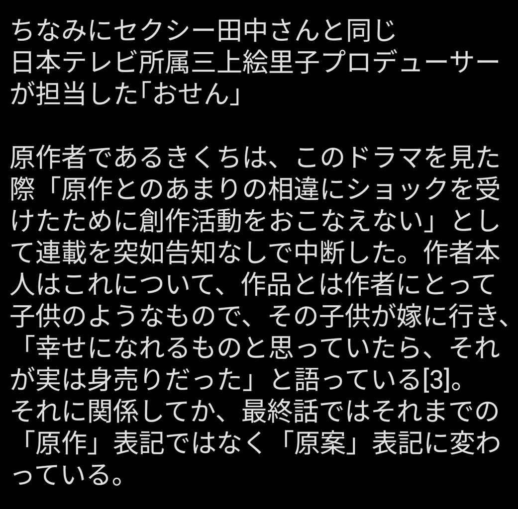 - まず、原作者のツイートに対し日テレとしてどう対応したかちゅうのを明らかにしてもらわんとな