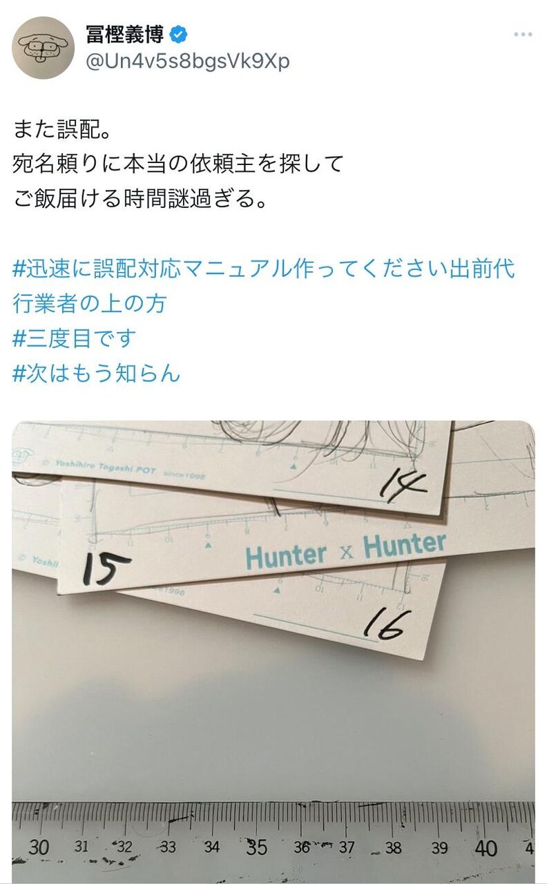 - 冨樫の住所が知られていたずらされてるんじゃなくて誤配なのか