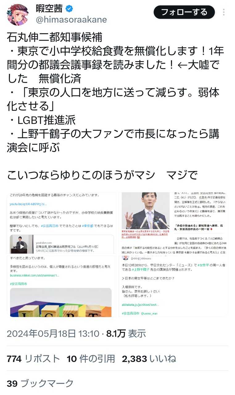 - 地方民だけどこいつ都知事なってほしいわ