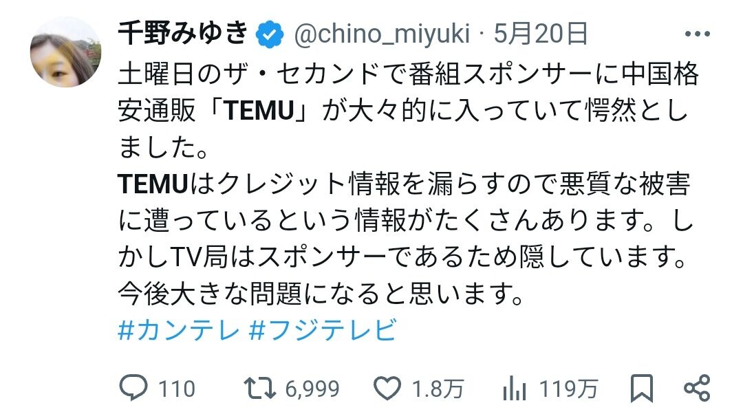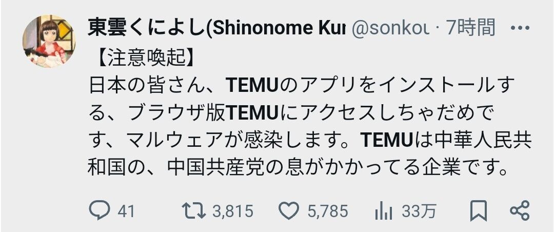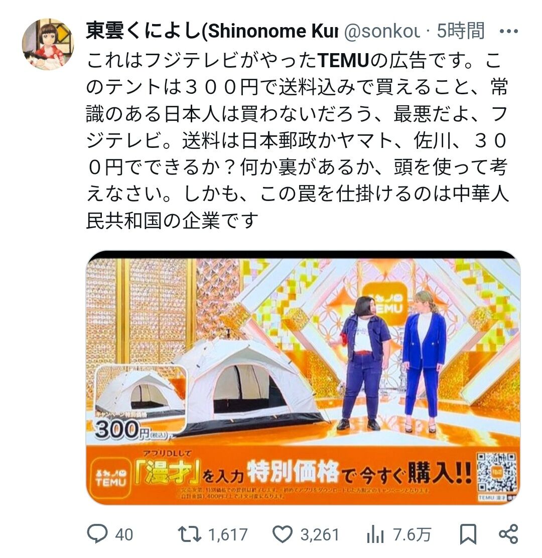 引用元: ・【悲報】TEMU、地上波でCM出した結果ユーザから驚愕の反応が続出…【ヤバい】