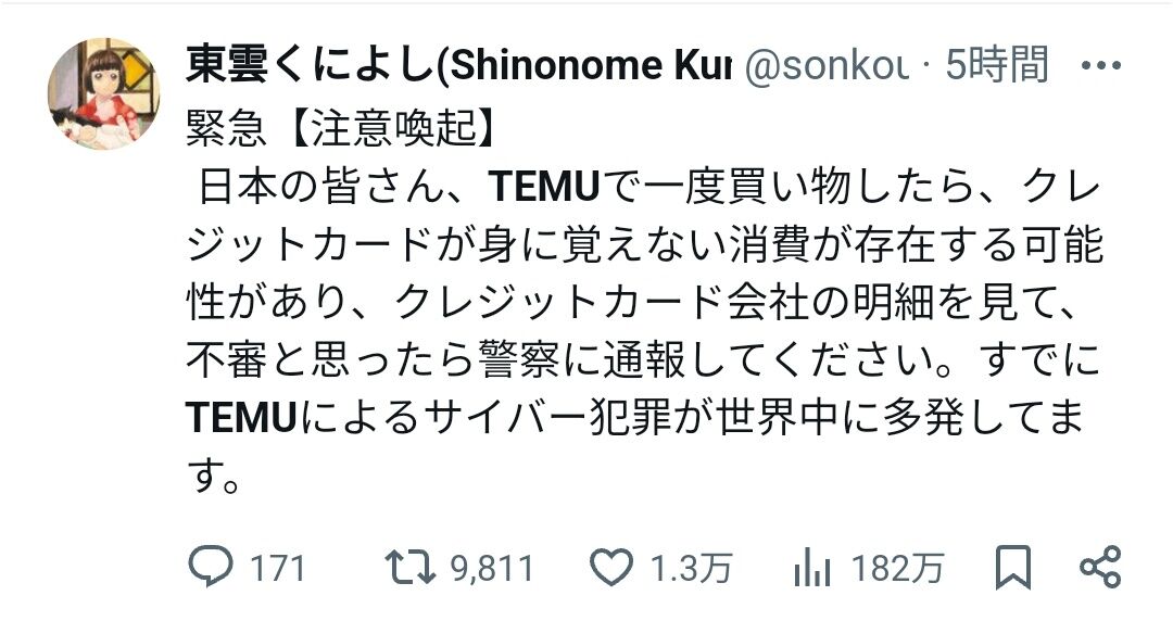 - ワイTEMUで買い物したけど何も危ない事無かったぞ