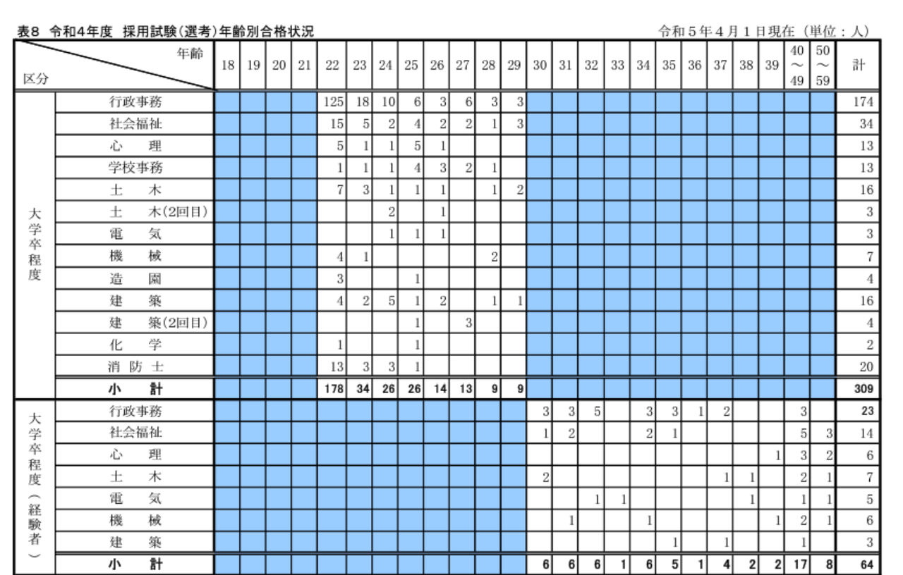 - これ川崎市の年齢別の採用状況やけど公務員といえども年増は不利やで