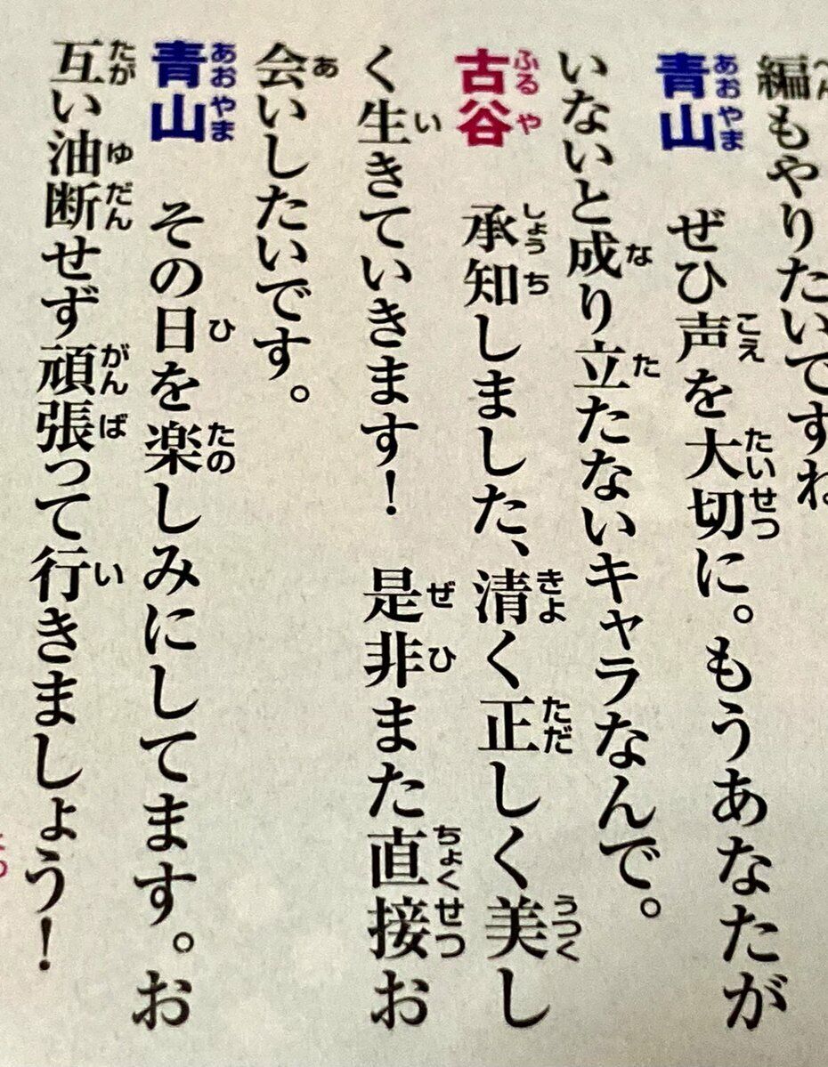 古谷「承知しました。清く正しく美しく生きていきます!是非また直接お会いしたいです」