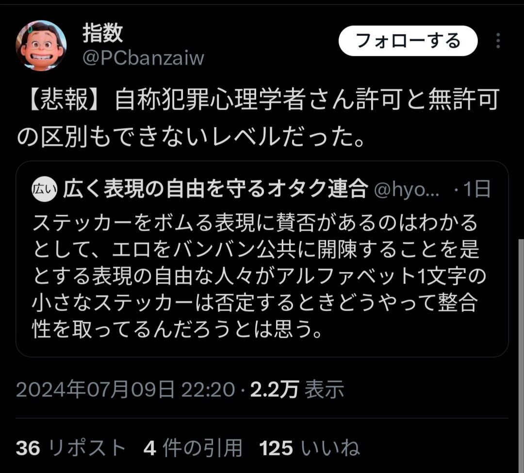 このオタク連合って言う人はアニメの絵は撤廃すべきって考えてる人でしょ