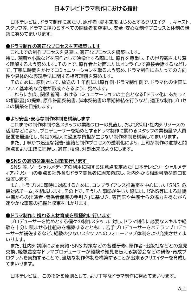 引用元: ・【朗報】日本テレビ「セクシー田中さん」事件を受けて「SNS危機対応チーム」を設置