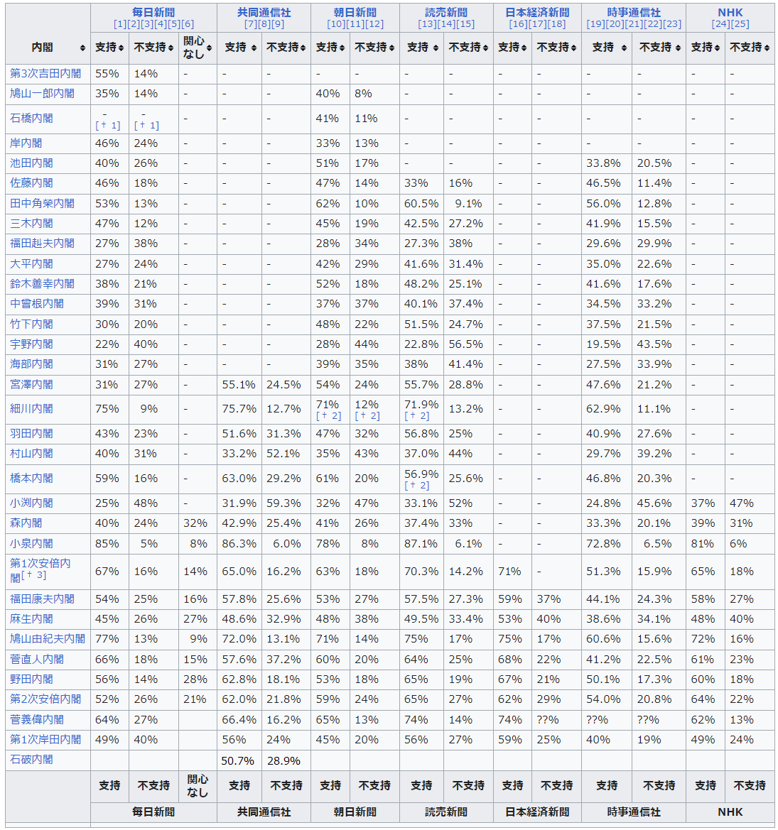 - 歴代でもまあまあ低め、直近の岸田と同じくらい