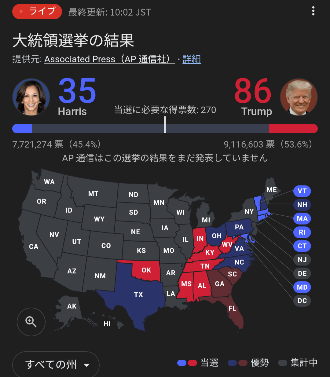 - カリフォルニアがハリス確定なんだから意味のない途中経過だよ