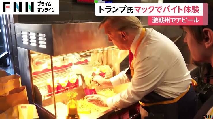 トランプ「俺は大金持ちだけどハリスの事が気に入らないから一瞬だけマクドナルドでバイトするわ。なんといってもマクドナルドが好きだからね」