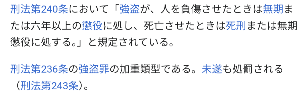 - 強盗殺人と強盗致死は額面同じだから一緒とか言われるけど