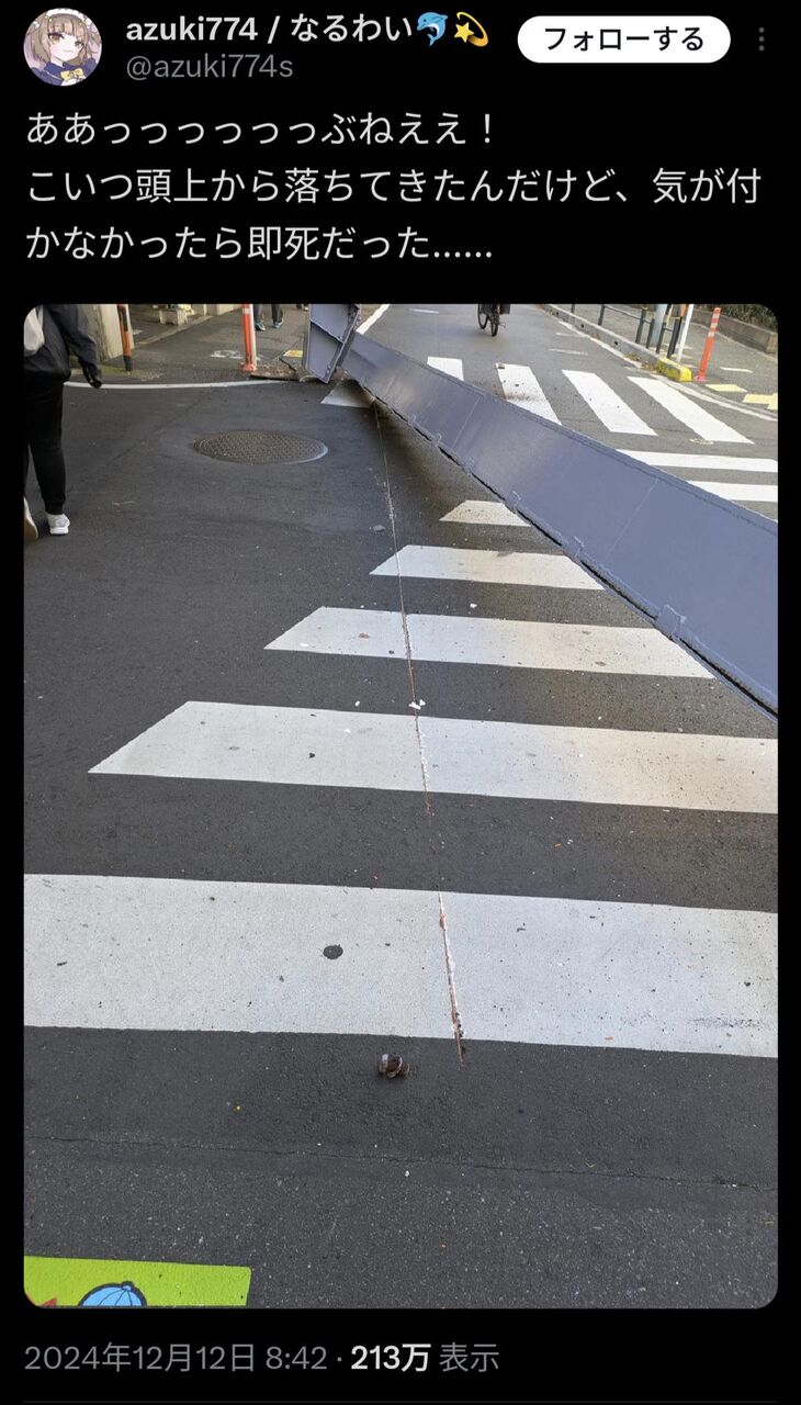- 足立区の日常って言うけど千代田区だかは歩行者に鉄パイプ貫通したのあったで