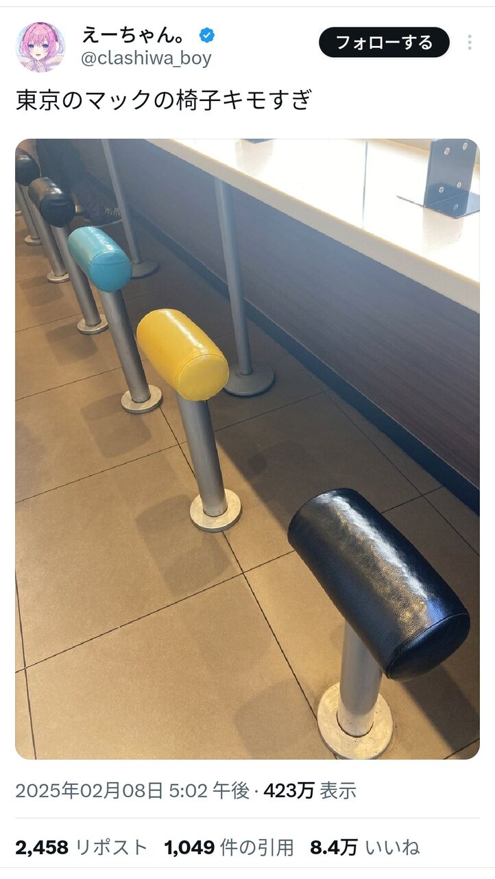 五年くらい前は居心地良かったのに、その半年後くらいに行ったら居心地悪い席に改悪されてたわ - 23: 以下、Zチャンネル@VIPがお送りします 2025/02/09(日) 03:33:11.04 ID:X09FQ/jB0