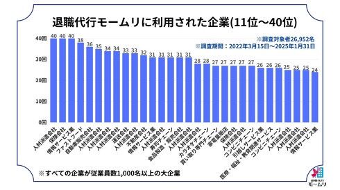 引用元: ・退職代行モームリ「退職代行の利用率が高いランキング上位40社を発表します」