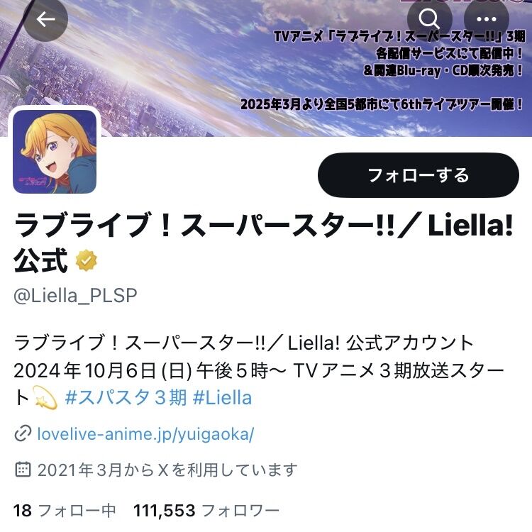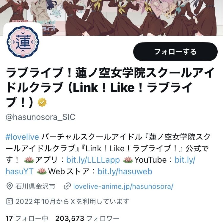 ラブライブシリーズ公式フォロワー数