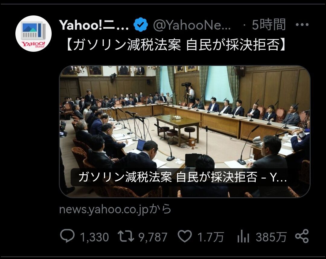- これって暫定税率廃止とは別の減税が廃案になったん?