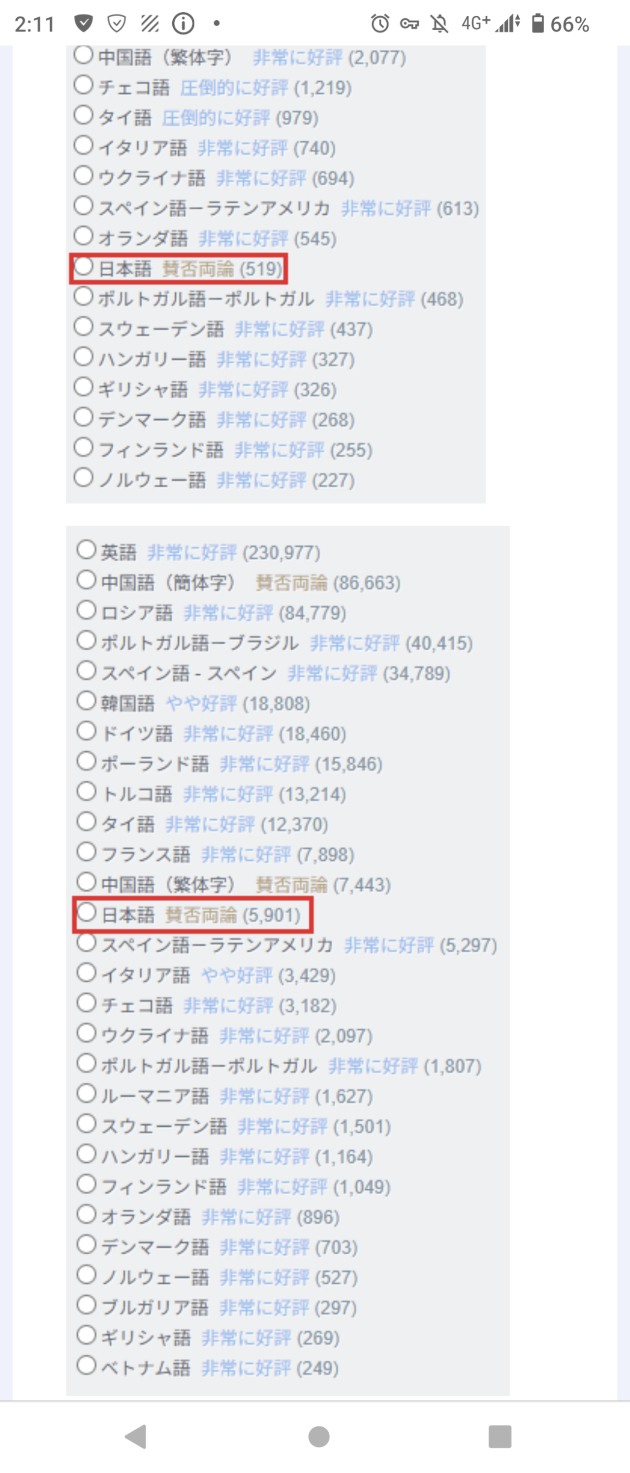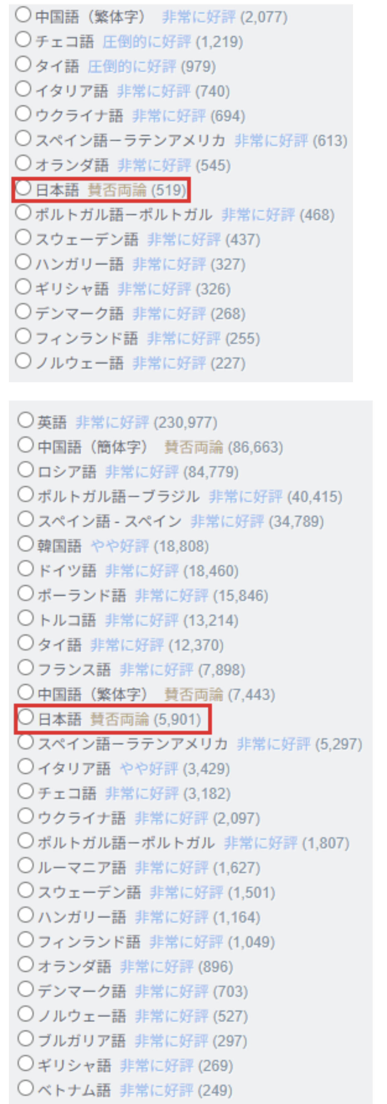 - 中国韓国もこの例だと他国よりワンランク低い評価をつけてるから東アジア的な評価と☆レーティングが合わんのやろね