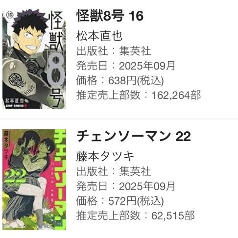 - 怪獣8号に最終巻補正あるとはいえ2倍どころか3倍近い差あるのヤバいやろ