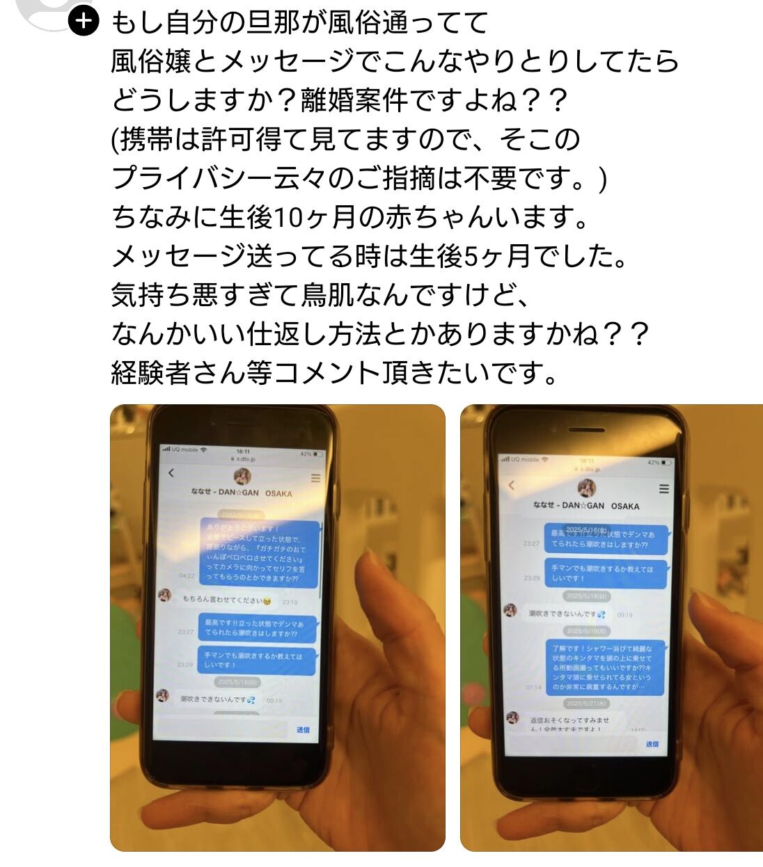 引用元: ・【悲報】人妻まんさん咽び泣く「旦那が風俗嬢とこんなやりとりしてました」