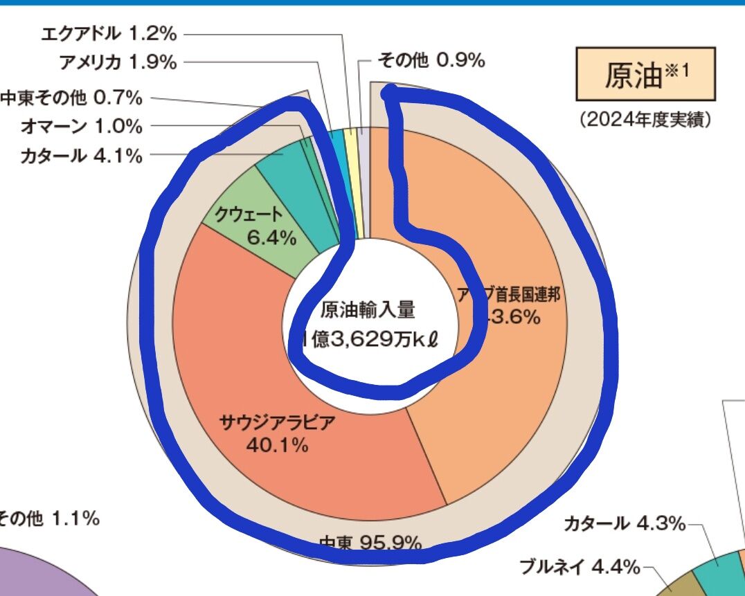 表向きは中東に4割依存してて日本よりはリスク分散されてるけど